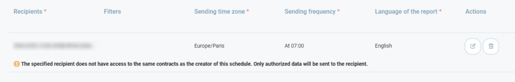 The specified recipient does not have access to the same contracts as the creator of this schedule. Only authorized data will be sent to the recipient.