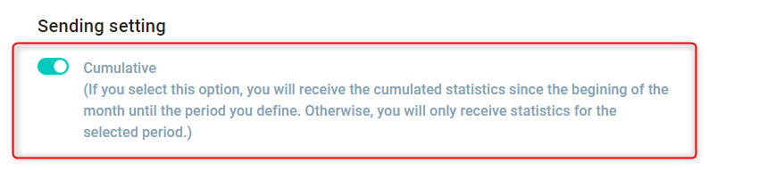 • Kumulative Versandoption: Diese Option ermöglicht es, die statistischen Daten, je nach gewünschtem Inhaltstyp, seit Beginn des aktuellen Monats zu sammeln.