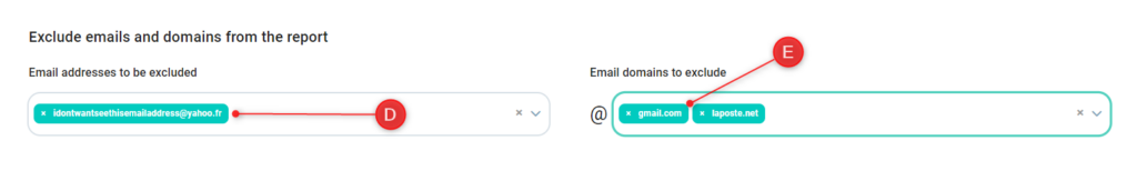 • Es ist möglich, bestimmte E-Mail-Adressen und/oder Domain-Namen von den statistischen Daten in Ihren Berichten auszuschließen.