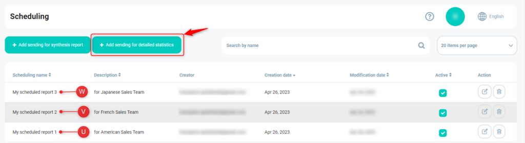 Allgemeine Regel: Wenn ein Benutzer den Versand von detaillierten Statistiken plant, basiert der Zeitraum der Daten, die er erhalten wird, auf der von ihm festgelegten Häufigkeit und Wiederkehr.