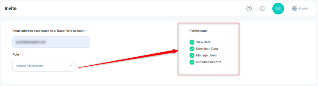 « L’administrateur du compte » est le rôle attribué à la personne responsable des accès sur TraceParts Analytics pour un contrat. Cette personne sera la première à pouvoir se connecter sur l’application TraceParts Analytics.